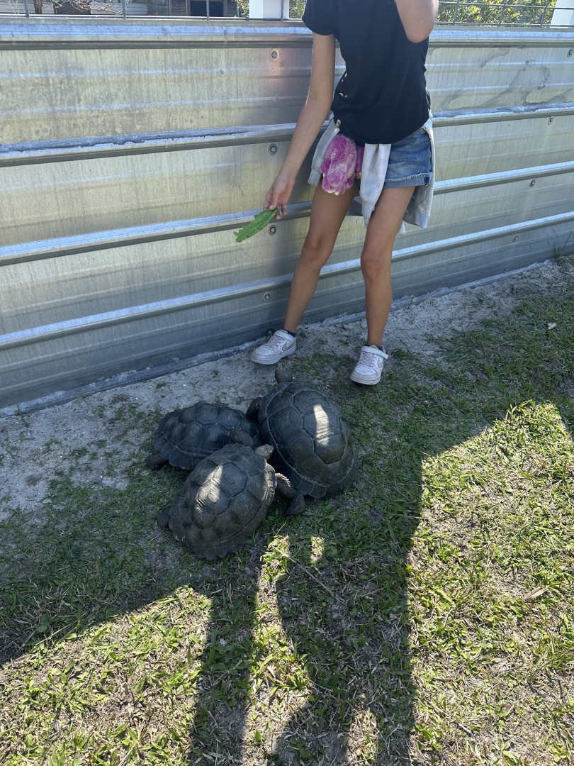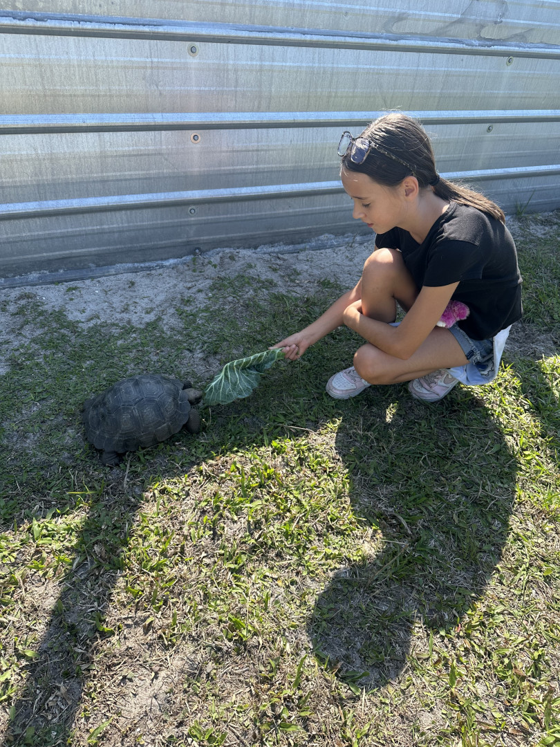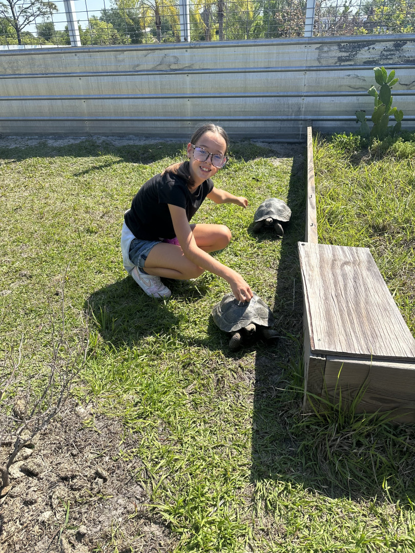 Her favorite animal is the sea turtle. She loves how they travel huge distances across the ocean but always return to the same beaches to nest. She thinks they’re brave and determined, and she wants to help protect them so baby turtles can safely make it to the ocean. Whenever we see wildlife, she reminds everyone to respect animals and give them space.