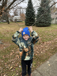 My son loves the outdoors! We spend all summer out side camping, racing dirtbikes and Fishing. Than spends fall hunting, always exploring !