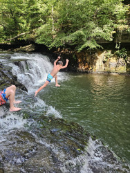 Ashers favorite outdoor activity is going hiking with his dogs Chowder and Nelly and exploring new trails. Of course its always best when they find a cool swimming hole on a hot summer day!