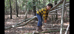 Lex’s favorite outdoor activity is to go exploring and playing in the woods. While doing this he enjoys looking for woodland animals, identifying birds, foraging for mushrooms, and occasionally building little play shelters, which he calls “forts.”