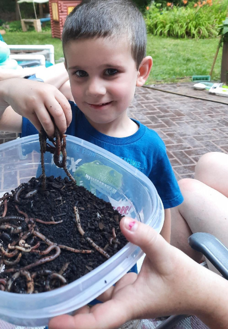 Anderson's favorite outdoor activity is catching his own worms to use as bait for fishing. He has loved catching and playing with worms since he was a toddler. And now that he loves to fish, he catches his own worms. It teaches him that hard work pays off and you can have fun while doing it. Once, he noticed a couple fishing that ran out of worms at our local pond. He quickly started digging and collected a pile of worms for them to use. He has a big heart and nature brings out the best in him.