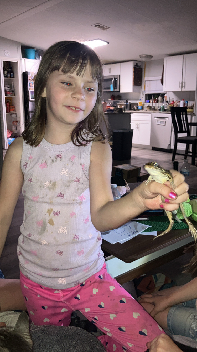 Annora is the expert in Lizard and Frog catching! We also have a lot of other animals at home as well, pigs cats dogs ducks chickens fish.