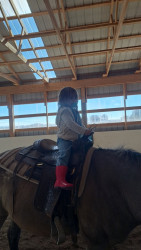 She absolutely loves horses. She is growing up around horses, learning to ride and helps care for the rescue we had. We go to her great grandmas farm and she loves it out there.