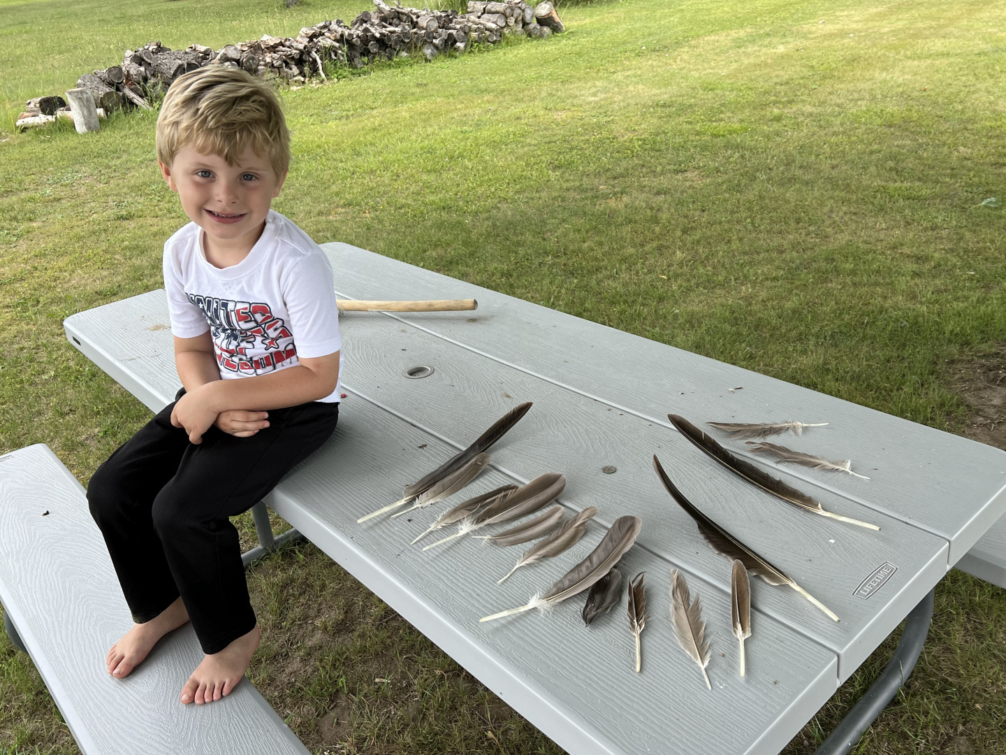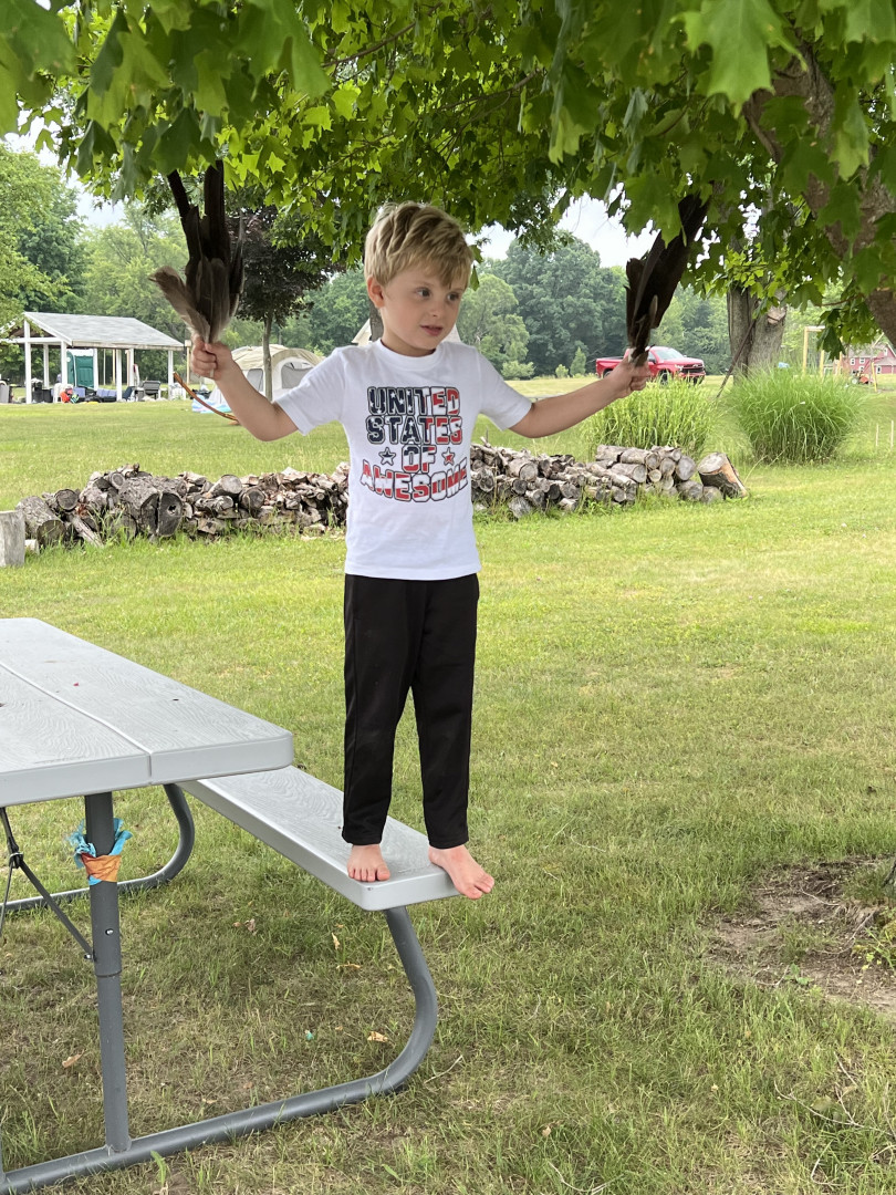 My son enjoys the outdoors, he once collected goose feathers to see how many feathers it takes to fly... we never collected enough to fly.