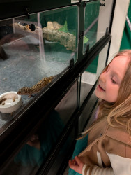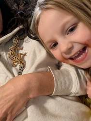 Geckos - because there are so many colorful varieties and species that are so different. She finds them fascinating to observe and build bonds with. Her first love with geckos were leopard geckos and she got one for her birthday.