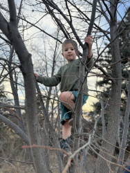 Avery is always bringing the outdoors into the house, from bugs to sticks and rocks. He loves climbing trees and learning about plants &more