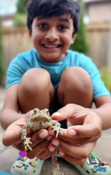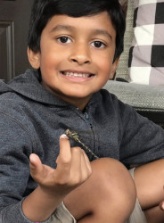 Ayden loves his bearded dragon because it looks like a tiny dragon and has a very interesting personality. He enjoys watching it wave its arm, bob its head, and chase insects during feeding time. Taking care of the bearded dragon teaches him responsibility and helps him learn more about reptiles and nature. Since Ayden already loves helping animals and protecting wildlife, caring for his bearded dragon makes him feel connected to the natural world.