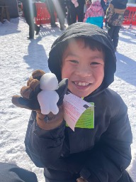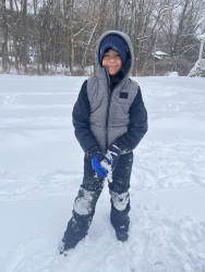 the weather cannot stop Brandon from venturing outside and exploring. he enjoys learning about animals