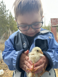 He loves his chickens and his bunnies from the very beginning he also loves his dog and his cat with full heart, his favorite wild animals he is currently fascinated with all predators and what they can do.