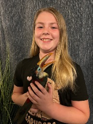 It’s hard for Cali to pick one favorite animal, but the Mealy Amazon Parrot stands out, because it’s pretty, intelligent and friendly. It also mimics the hawk headed parrot with fluffing its head feathers out.