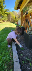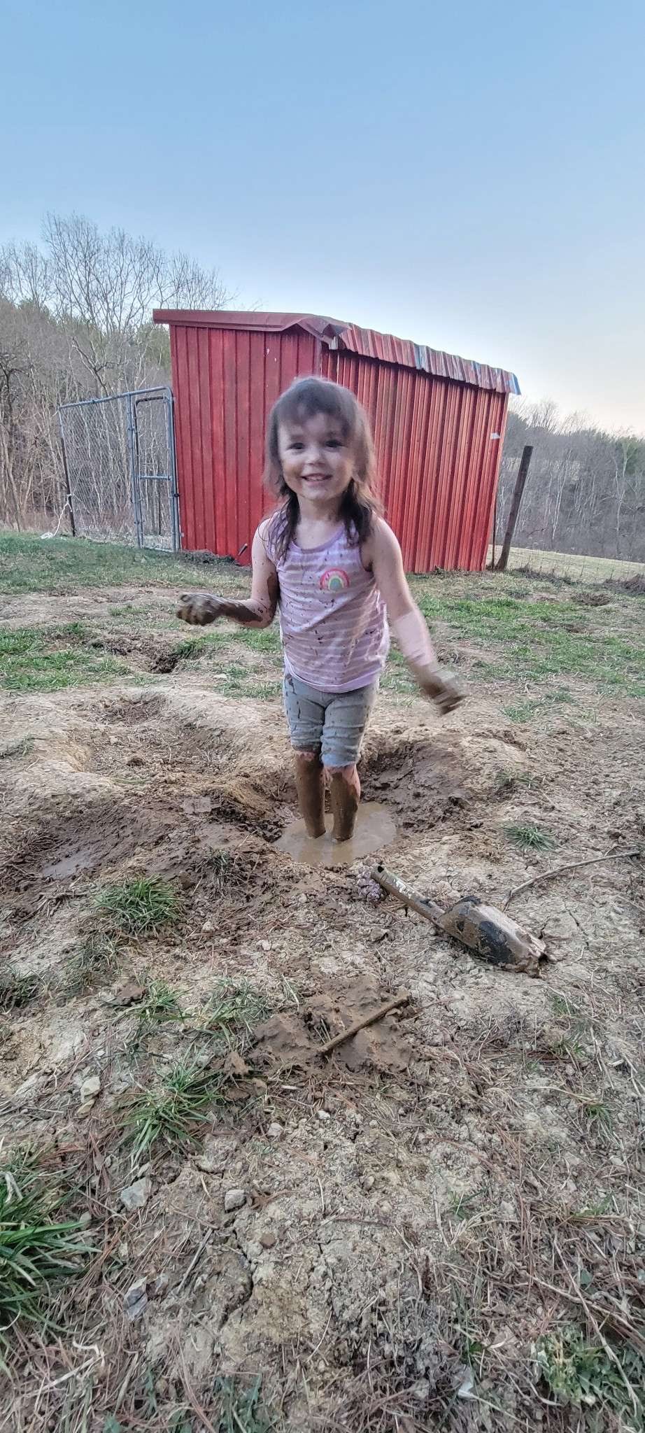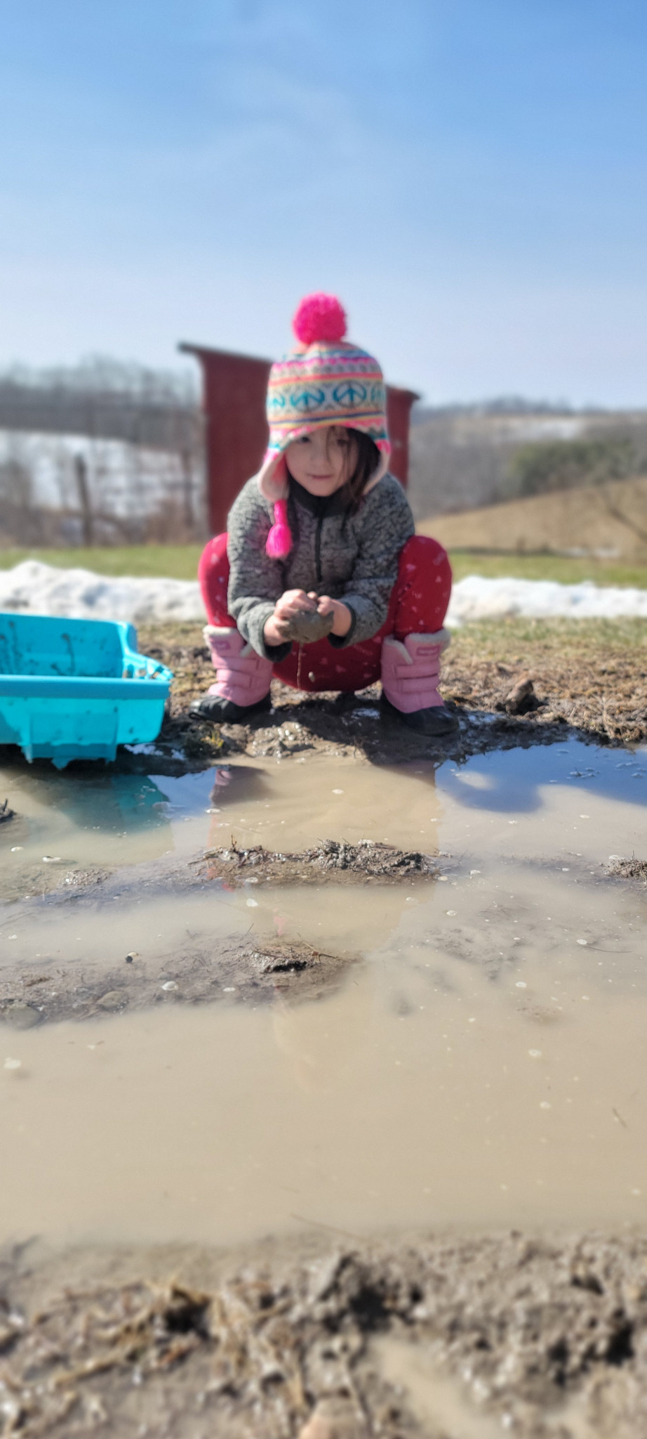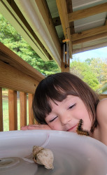 My favorite outdoor activity is playing in the mud and creek at our house. Last summer I found fish, snails, crayfish, tadpoles, snappy turtles, tadpoles and a baby frog! I build them houses and tell them stories.