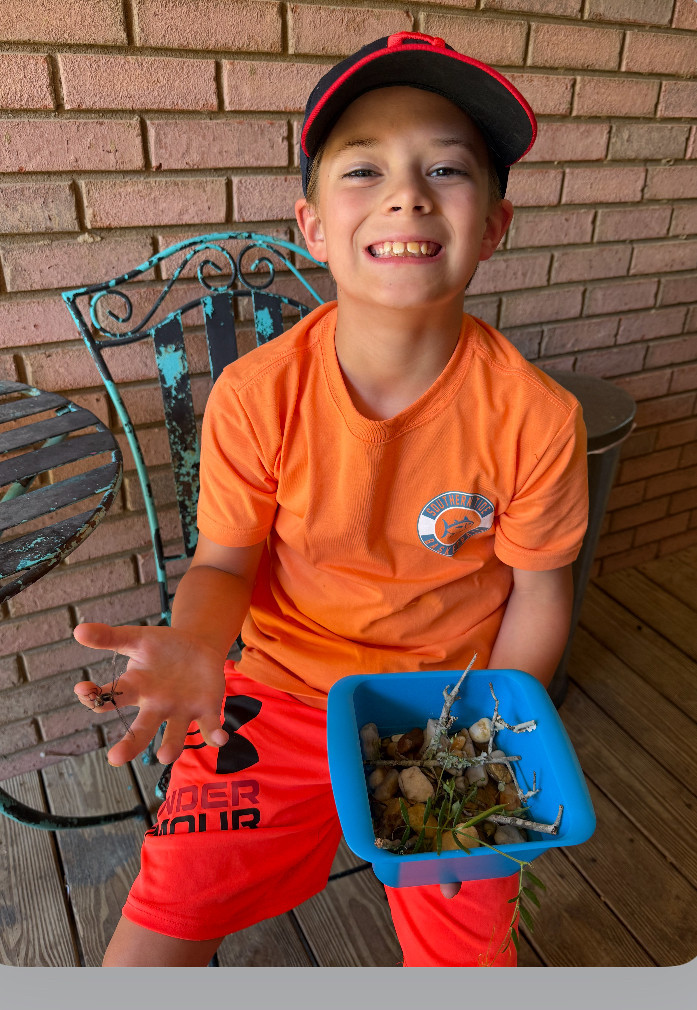 Learn MoreHe loves Bugs picking them up and learning about them any bug or Animal, don’t care what it is. He is learning what is poisonous and what is not ! he likes learning about insects that he picks up. He likes going outside and being out there in nature, he said he likes running he just wants to be outside. He Has run up on a dragonfly and built it a home, But It left because we don’t trap we admire! He’s is very curious about everything! He has No fear.A Natural love of all things in Nature!