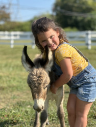 Charleston's favorite animal is a donkey. She loves donkeys because for her 4th birthday her family took her to meet a local herd and one little guy came up to her and became her friend. He acted so sweetly around Charlee and ate carrots from her hand. She now has quite the collection of donkey accessories - a necklace, a t-shirt and a book.