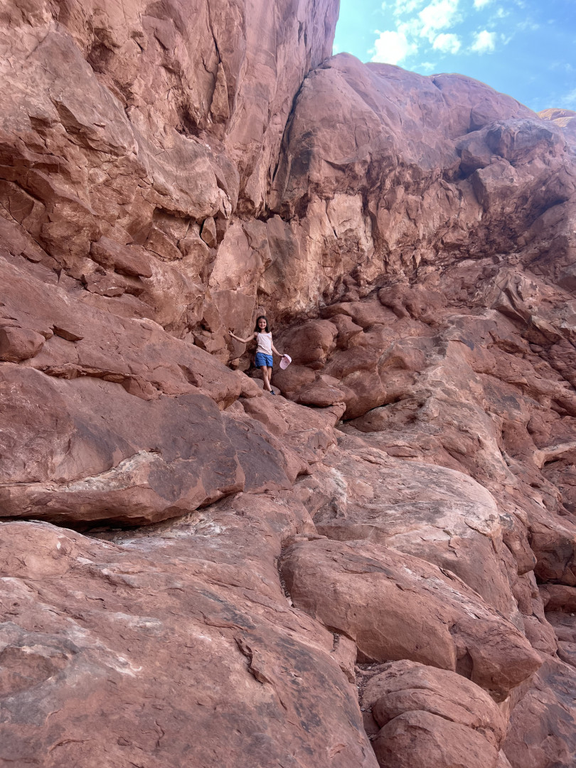 Chloe loves hiking and exploring trails. She especially enjoys climbing on fallen trees and scrambling on rocks while she hikes because it feels like a fun adventure. She has explored many of our national parks and really enjoyed climbing on the rocks at Arches National Park.