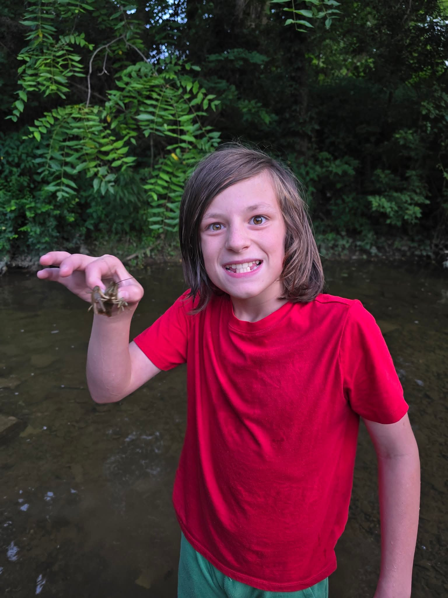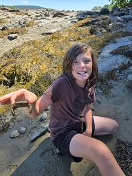 He loves to go exploring in a creek for crawdads or looking through tide pools for sea stars and crabs. He likes to look for crabs on the beach and in the garden he looks for garter snakes.