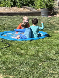 Cooper loves to play in any body of water - whether it is in our backyard with water balloons and a a hose; in an outdoor swimming pool; OR in a river, lake or ocean exploring the contents and surroundings!