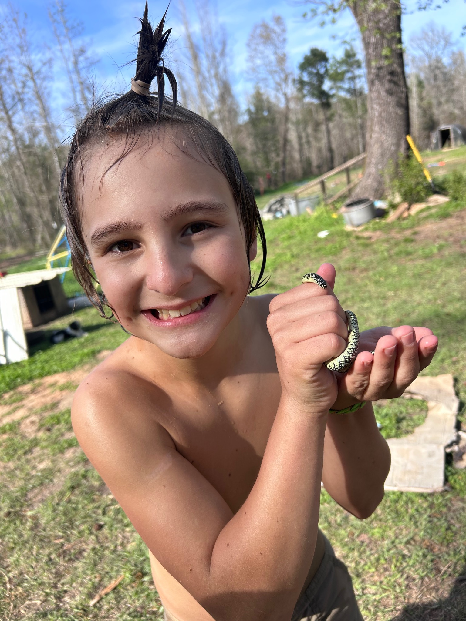 Learn MoreI love that every night the frogs in the creek are croaking, I love that I can hear cicadas every morning. I love exploring in the back of the woods and building shelters to watch the wild animals. I love to climb high trees in the forest and watch the forest.