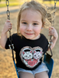 Enslie’s favorite outdoor activities include playing frisbee and looking for treasures. She likes to do most things outdoors that involves being active like climbing and using her skills to explore. She enjoys collecting leaves, sticks rocks and other things that are interesting and different than the norm. Enslie has found a turtle shell, insects that have molted their outer skin and even a fossil!