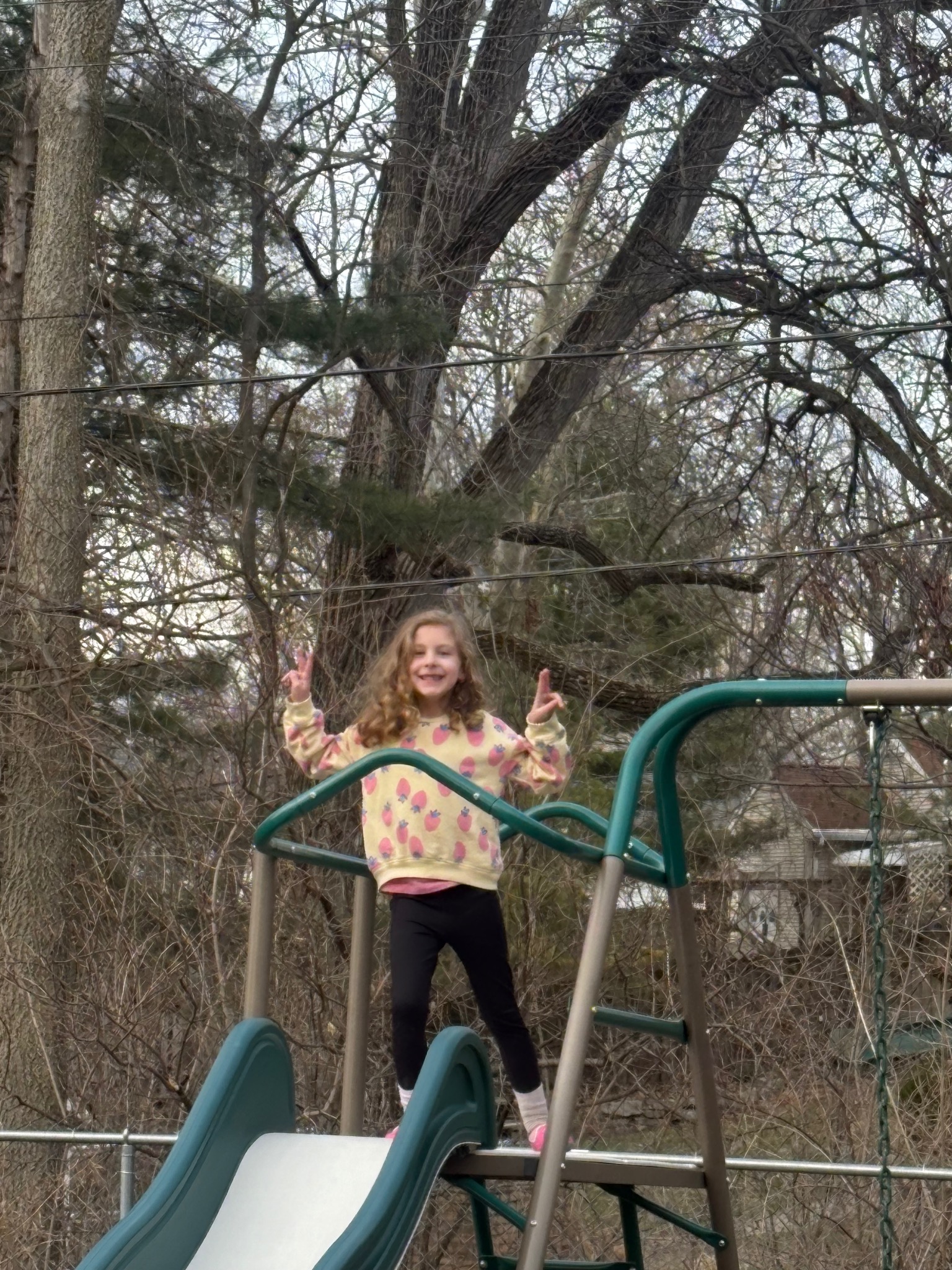 Playing on her swing set