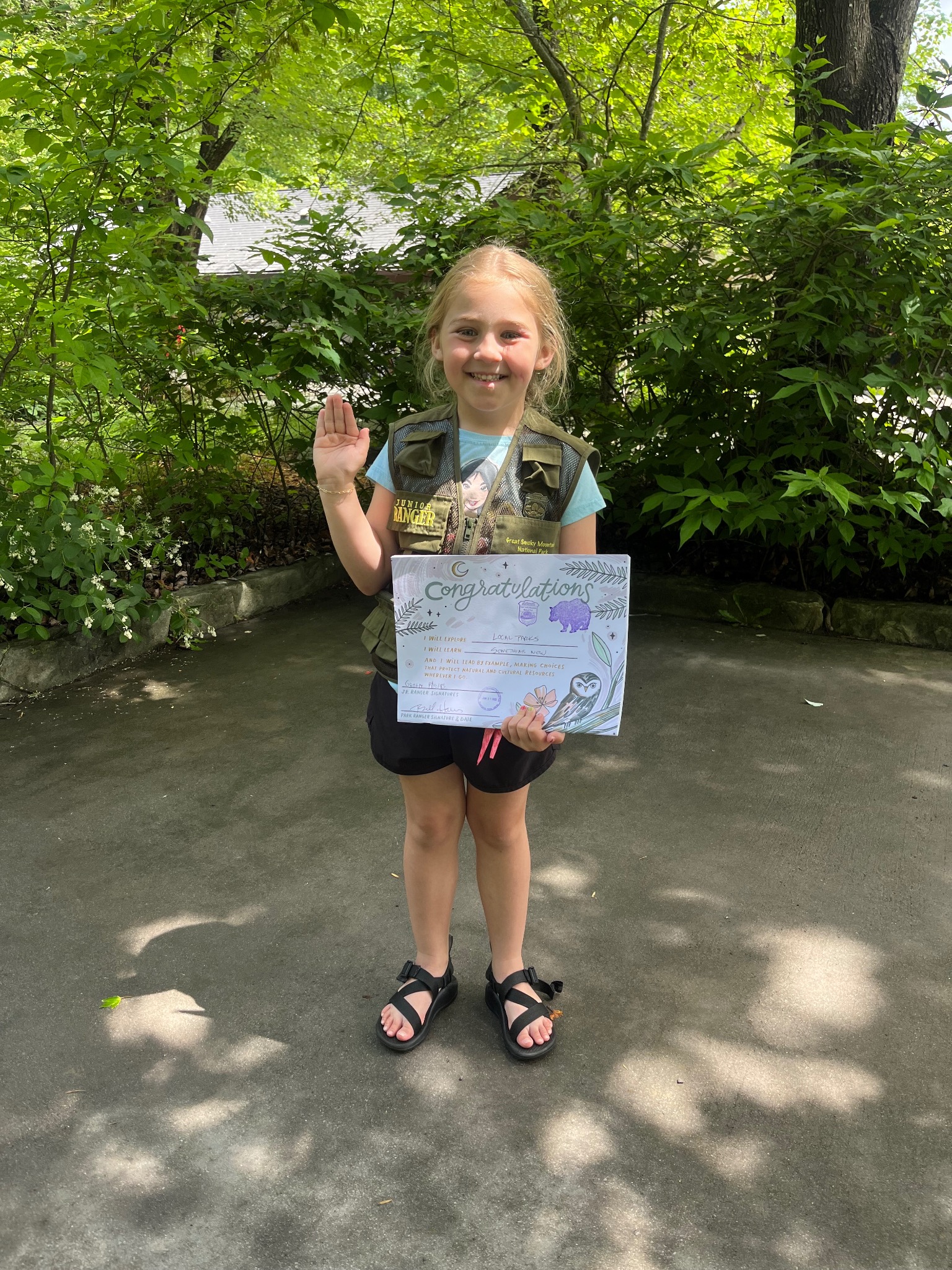 Her favorite thing to do outside is explore and listen to birds.