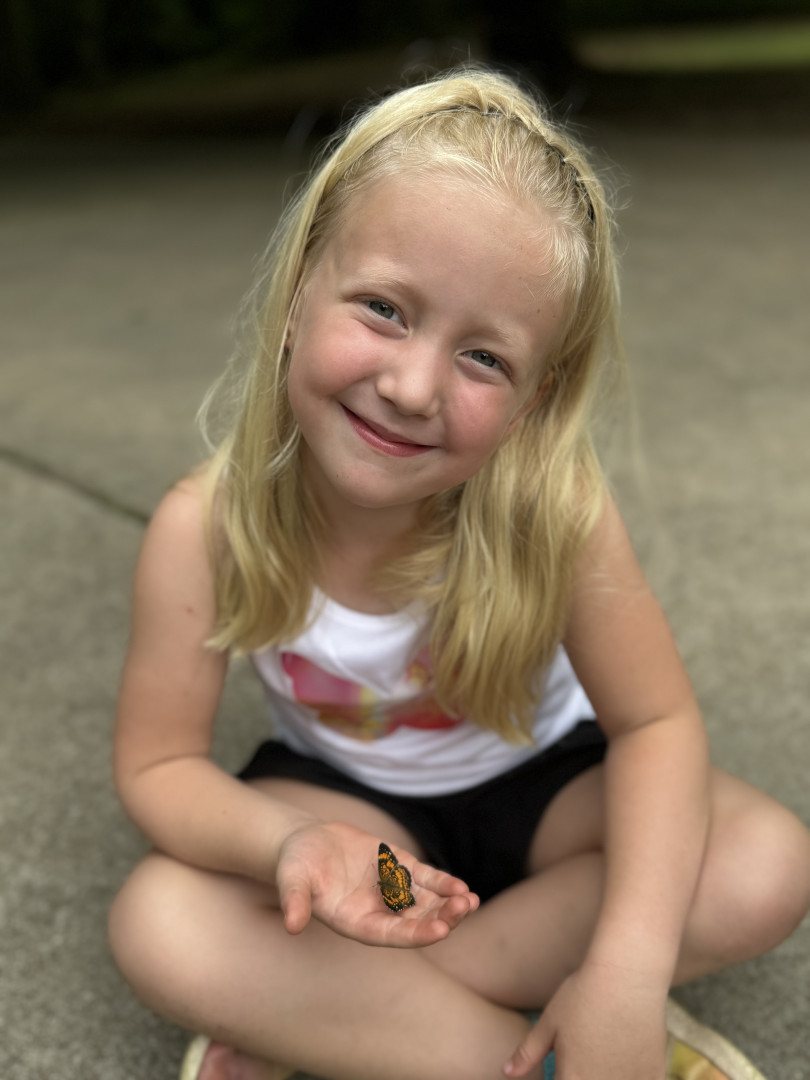Goldie has always loved animals—from rescuing turtles from the road, loving raising her small flock of chickens, and hatching butterflies. If she had to choose, Goldie’s favorite animal would have to be the butterfly. In the springtime she grows a butterfly garden with native plants to attract them! She catches caterpillars and watches them go through their stages to becoming a butterfly and then releases them back into the wild! 🌻🦋