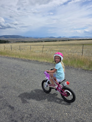 Harper likes playing in the dirt, helping with watering trees and flowers. She also likes climbing on rocks, going on walks, watching animals, finding new flowers, and bike rides.