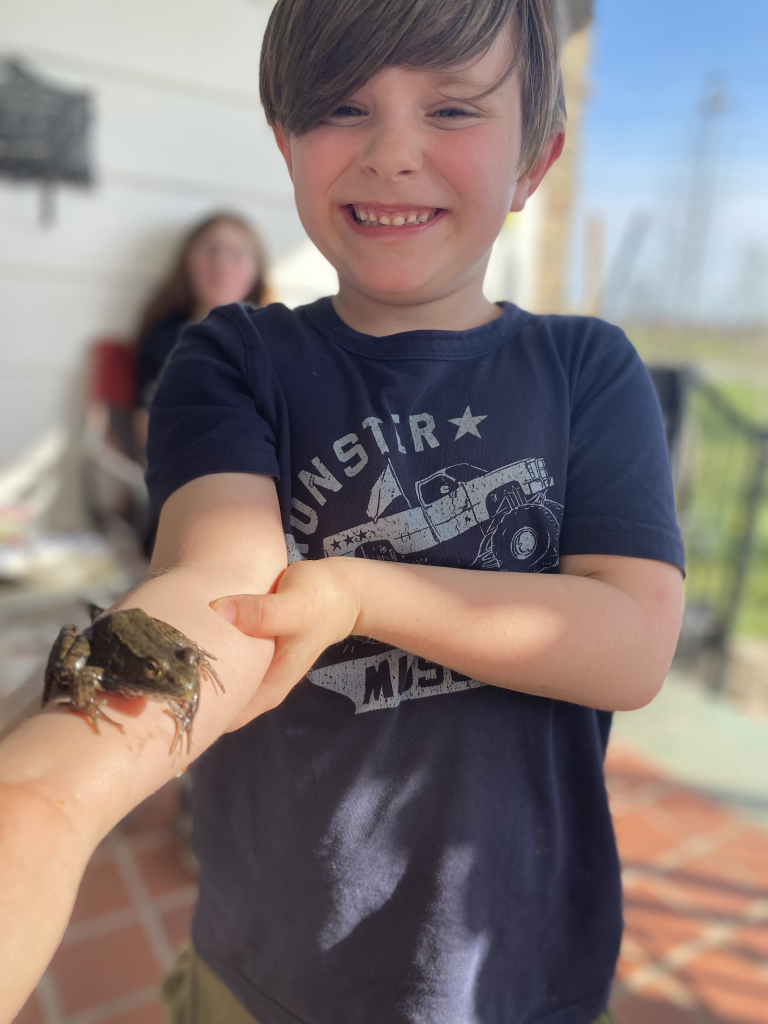 He loves to fish. And to find frogs down in the creek.