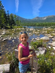 Ivy enjoys hiking with her family. She likes to climb rocks and see mountains, she loves running into a water crossing on our hikes and crossing them with little to no help. Ivy had a blast last summer hiking the bubbles in acadia national park and then standy stream pond at baxter state park. Then enjoyed swimming togue pond and building fairy houses on the shore with her siblings. She always is excited to be able to spot wildlife from snails to owls, or deer.
