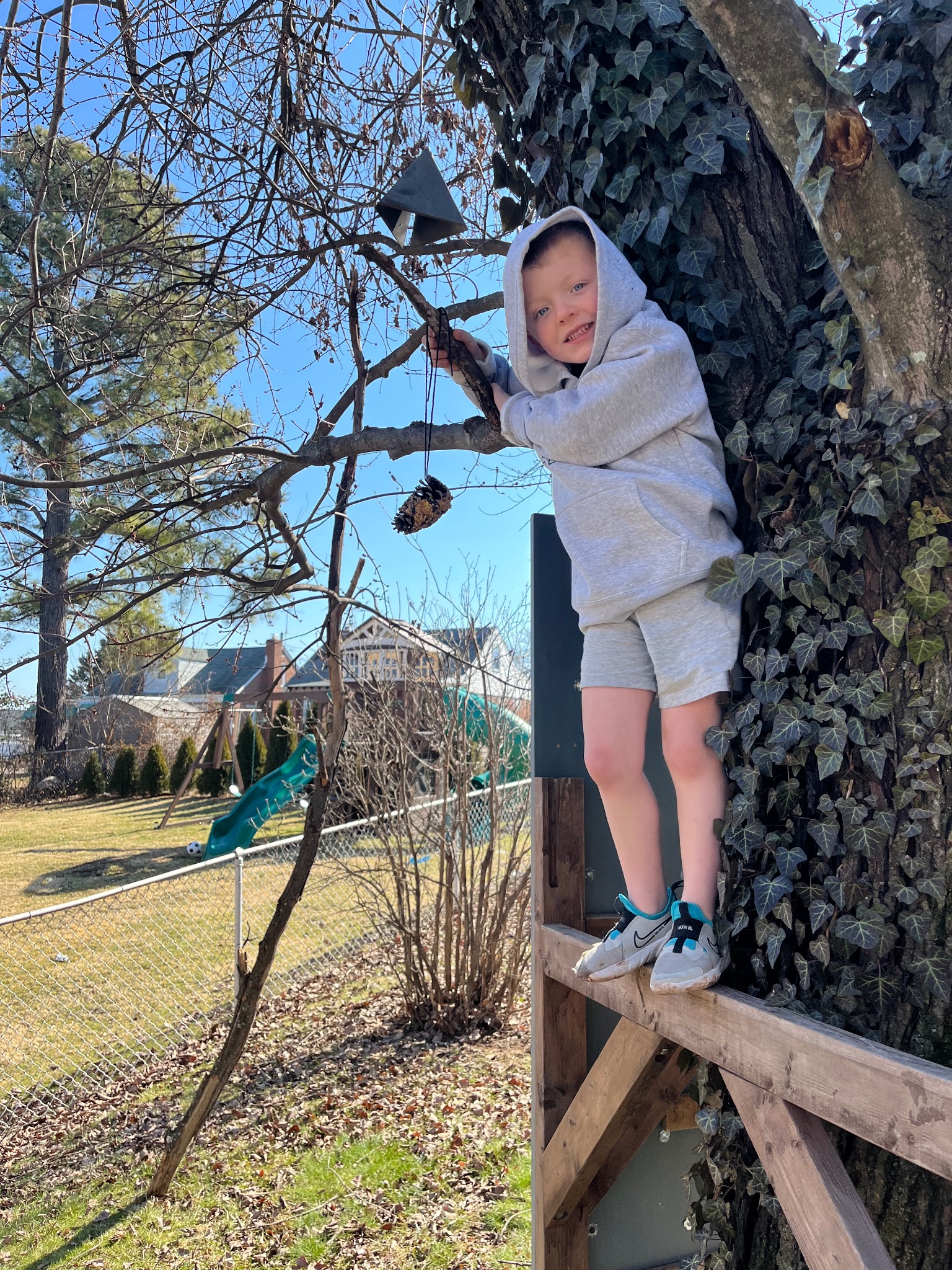 Playing ball and going on nature hikes with my binoculars.