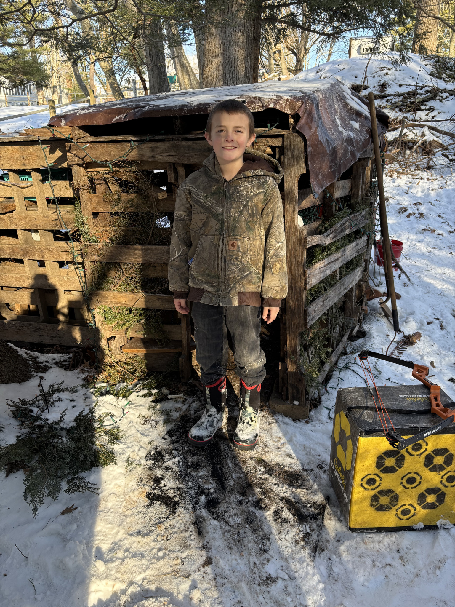 His favorite outdoor activity is fort building. He enjoys building shelters in the woods and adding amenities to them. His fort right now has a tool shed, archery range, pond, fire pit, and wood shed. He loves to camp out at his fort overnight under the stars. Jake is a true outdoorsman in every aspect.