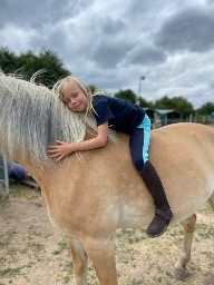 Horses!!! Followed by dogs and bunnies 🥰 She once told me the back of a horse is where she feels safest. People are proud of her instead of being annoyed for her being “too much”! Horses are her therapy! They are gentle and once you earn their trust you’ll have a loyal friend for life. You have to regulate your emotions or you’ll make them nervous and they sense when you’re upset. Her dog because he makes her feel safe and bunnies because they are cute and soft and cuddly