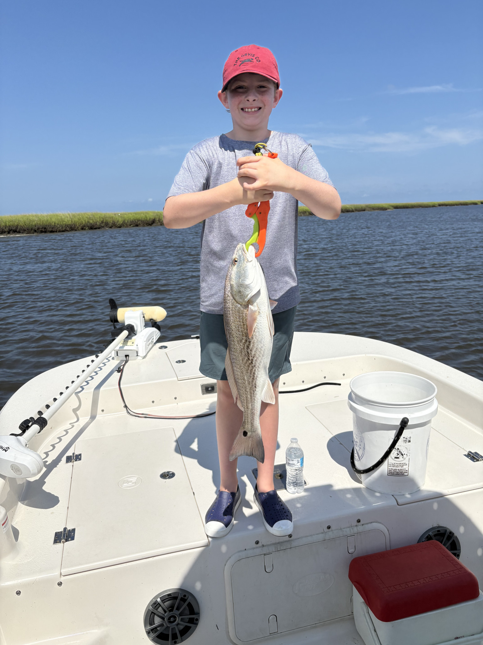 I love all sorts of outdoor activities, but fishing by far is my favorite. I love fishing for bass, trout, and catfish. I have caught fish from local ponds, lakes, and the Nantahala River. I love the peace and quiet of being in nature, but also the excitement of getting a fish on the line. I even got to go fishing on the intracoastal waterway last summer on a boat and caught baby sharks and a huge red drum. I love identifying the different kinds of fish that I have caught.