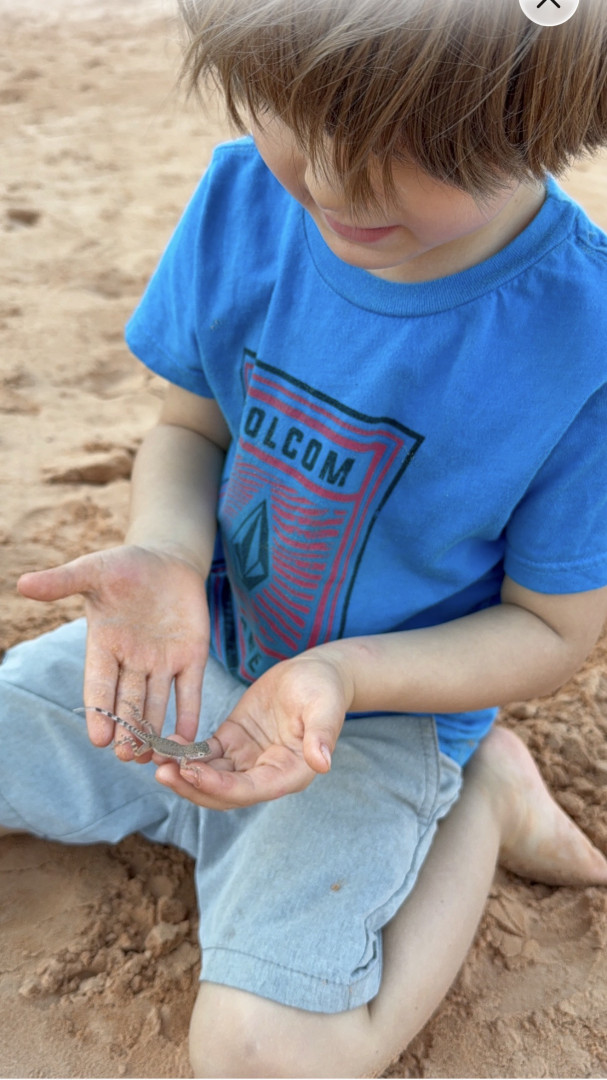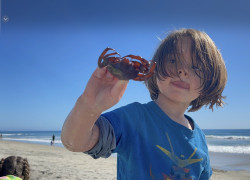 He loves to go outside and play in nature. Particularly to look for different insects and watch them in jars. He also loves to go to the beach and find crabs!