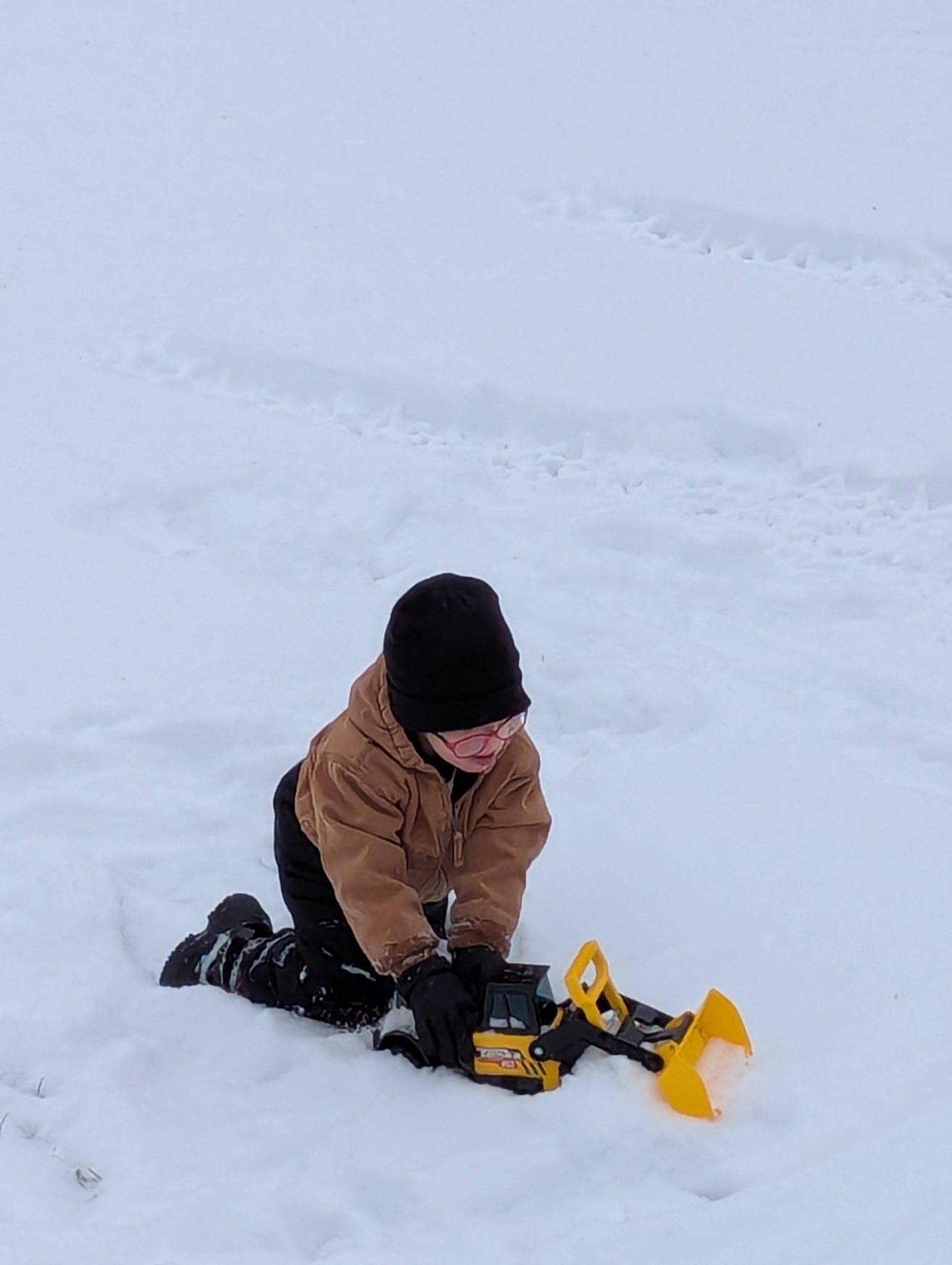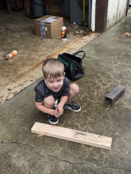 Driving his monster jam 12V truck. Playing in the creek. Going for nature walks. Feeding the neighbors horse carrots!