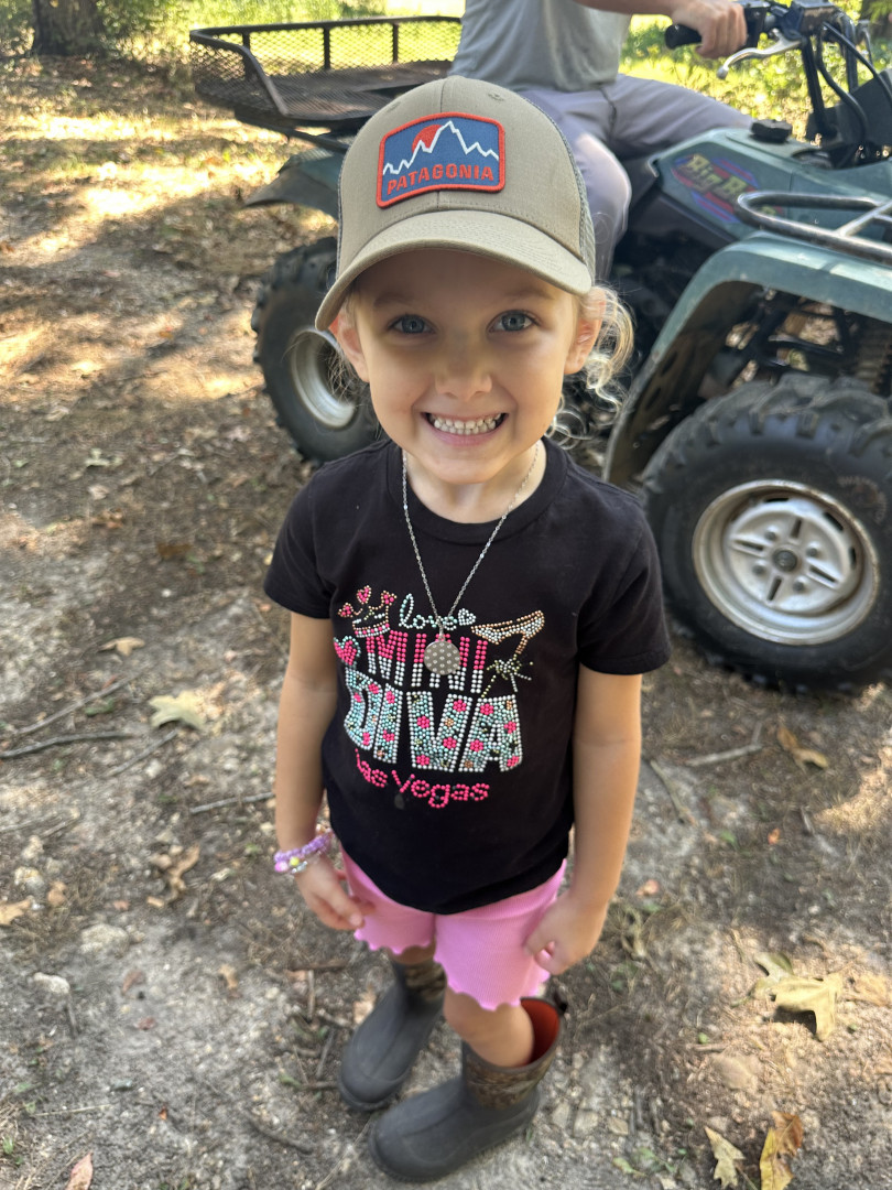 Kenzlie loves all things outdoors! She watches hunting videos with her dad to learn and is always up for a fourwheeler ride through thewoods