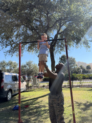 Going to the playground, riding his scooter, playing “hunter” outside or any imaginary game!