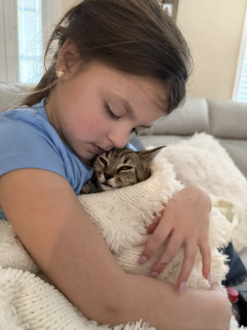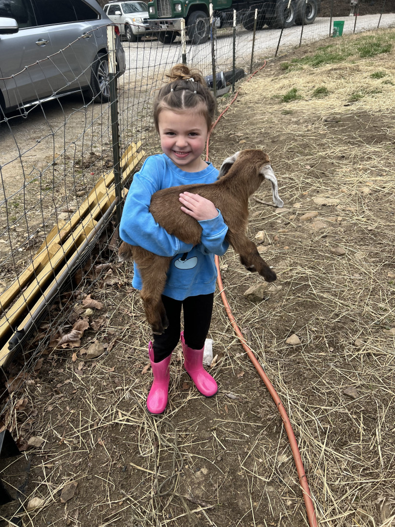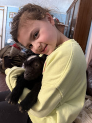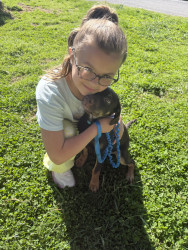 My girl loves animals and wild life! From chickens to family cats& goats she is gentle and loving to them all, even digging up worms to hold