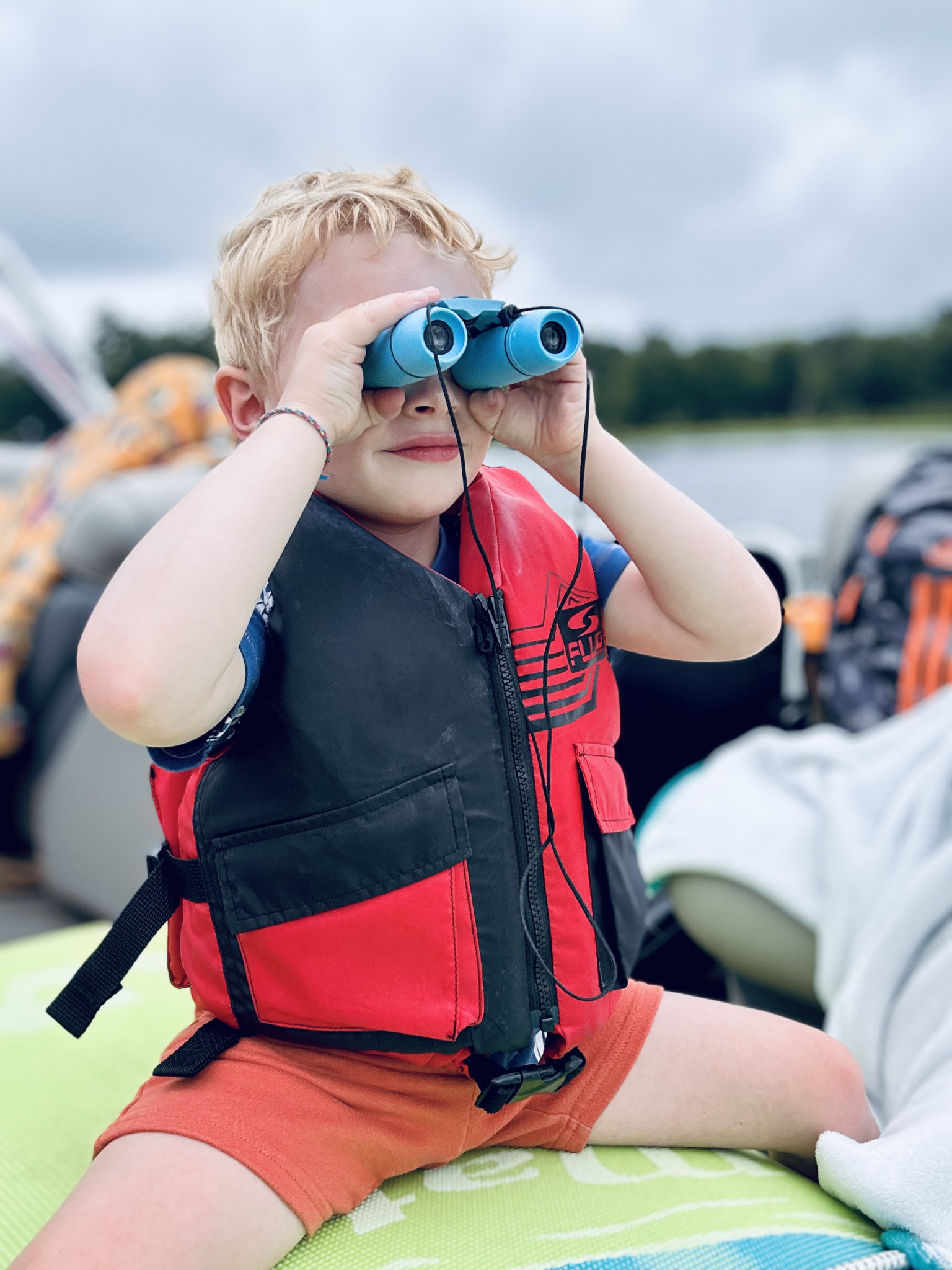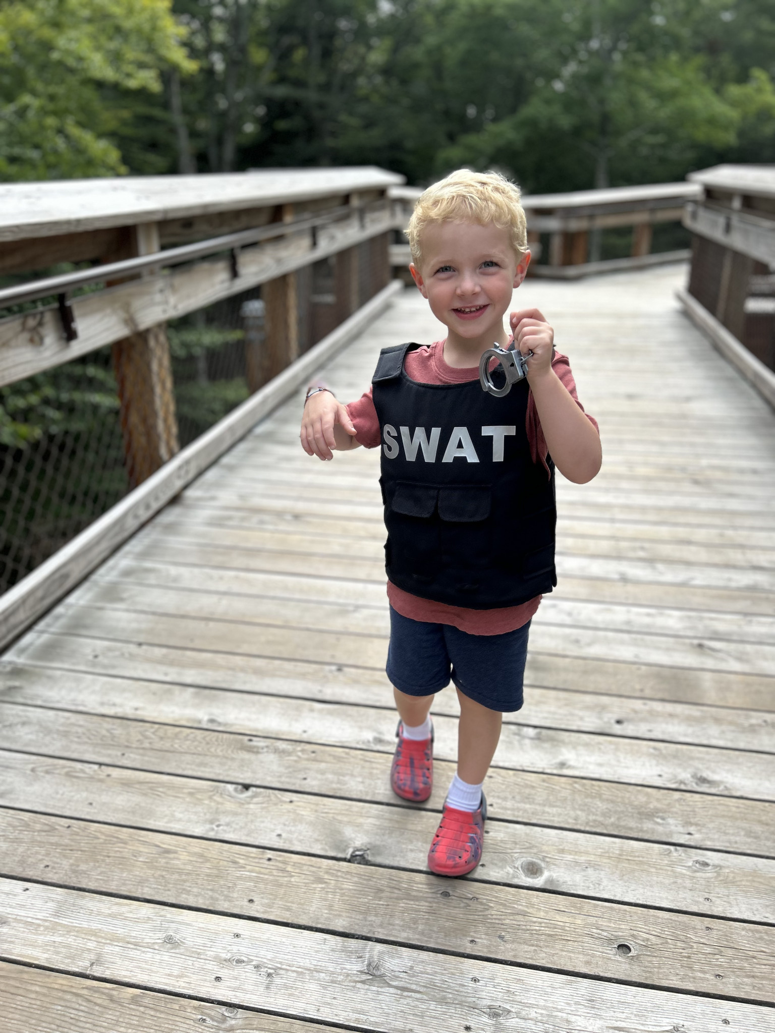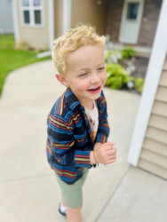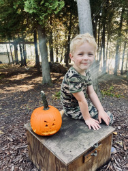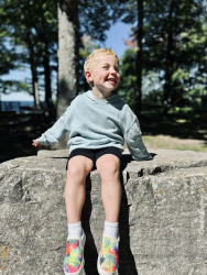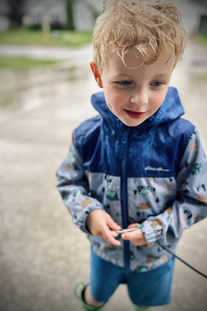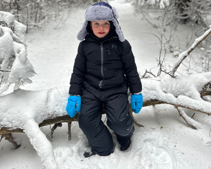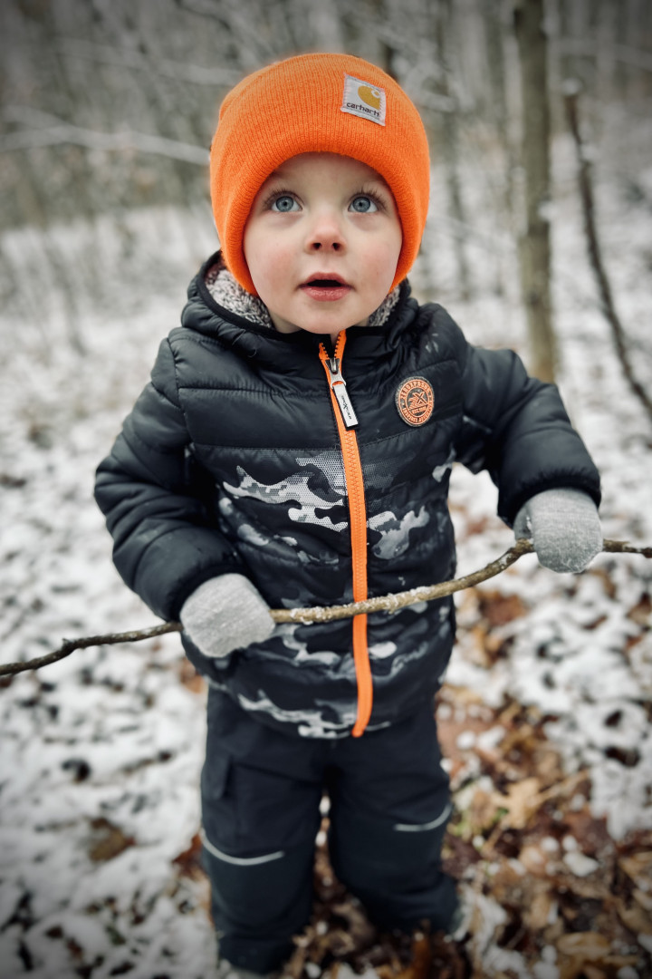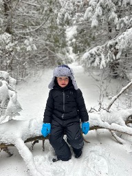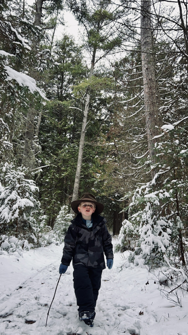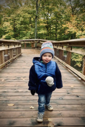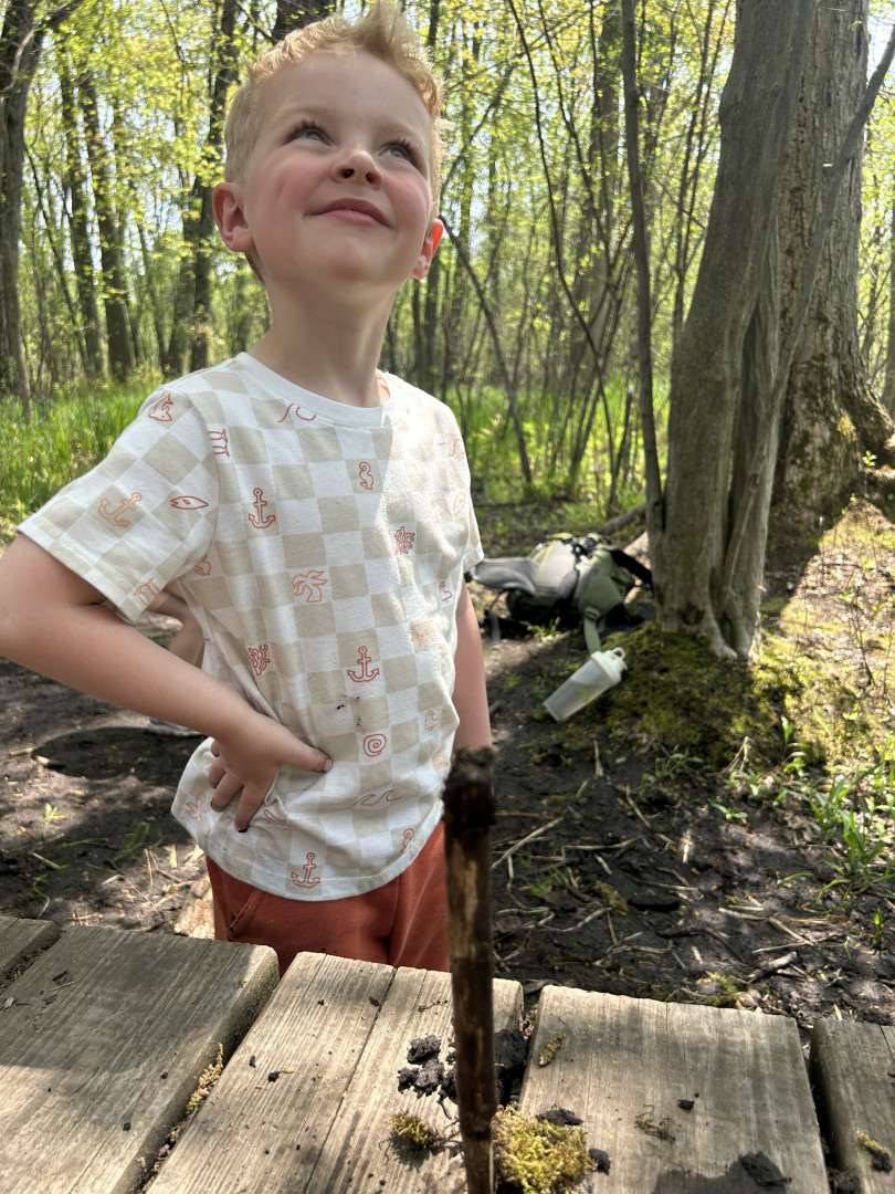 Mason's favorite activity is exploring, particularly because, as he puts it, he wants "to see nature, and animals, and foot prints. And the beach." He loves to embark on hikes equipped with his animal footprint book and binoculars, and he often brings outdoor scavenger hunt checklists. During these adventures, Mason enjoys making walking sticks from fallen branches, finding hidden nests, jumping in puddles, and searching for shells while splashing in the waves at the beach.