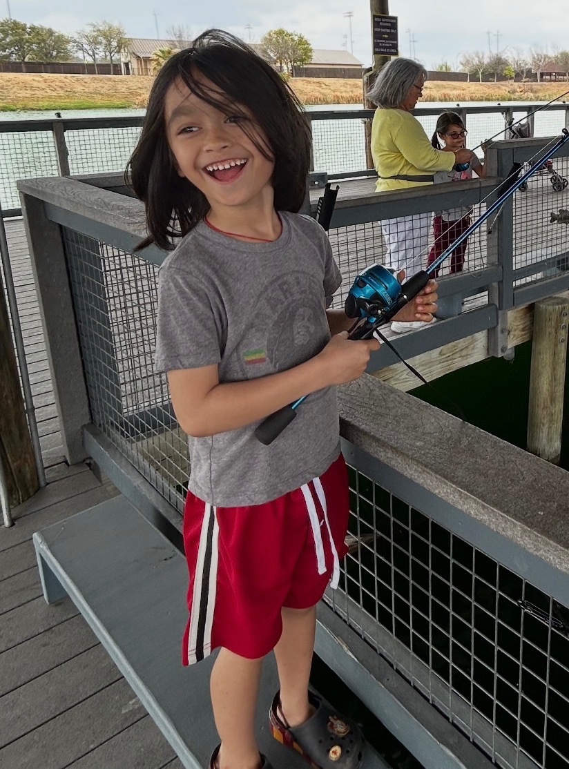 He loves to swim and be by the water. He recently went fishing (catch and release) and it was one of the best moments of his life. When he’s outside he is free and just about fearless.