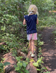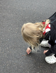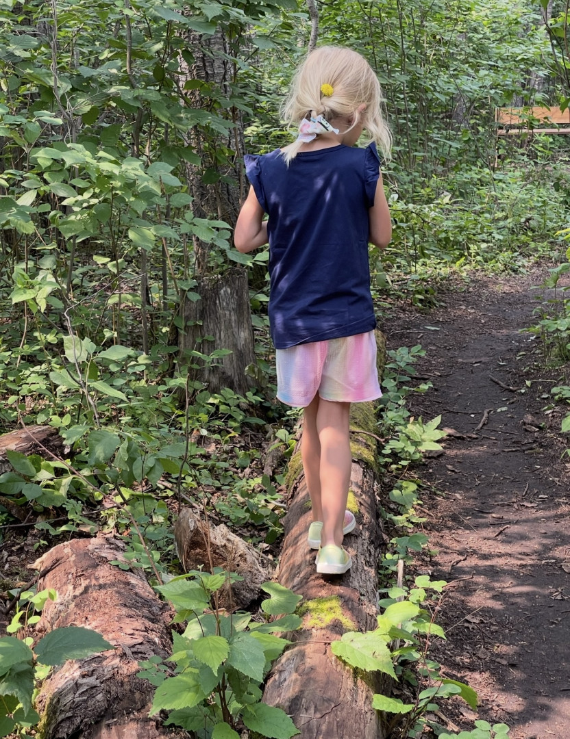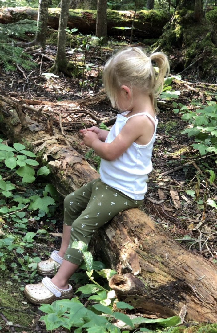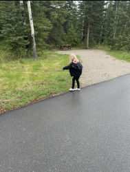 In winter her favorite activity is skiing. She tried skiing 2 years ago and has now been in a ski racing club for 2 seasons. She also spends most of her summer in the outdoor pool swimming. In 2023 she was the youngest ever to qualify for the outdoor summer swim team in our local community at age 4. If she would spend the entire day in the water or ski hill she would. She also loves to explore nature and gather things to make nature art.
