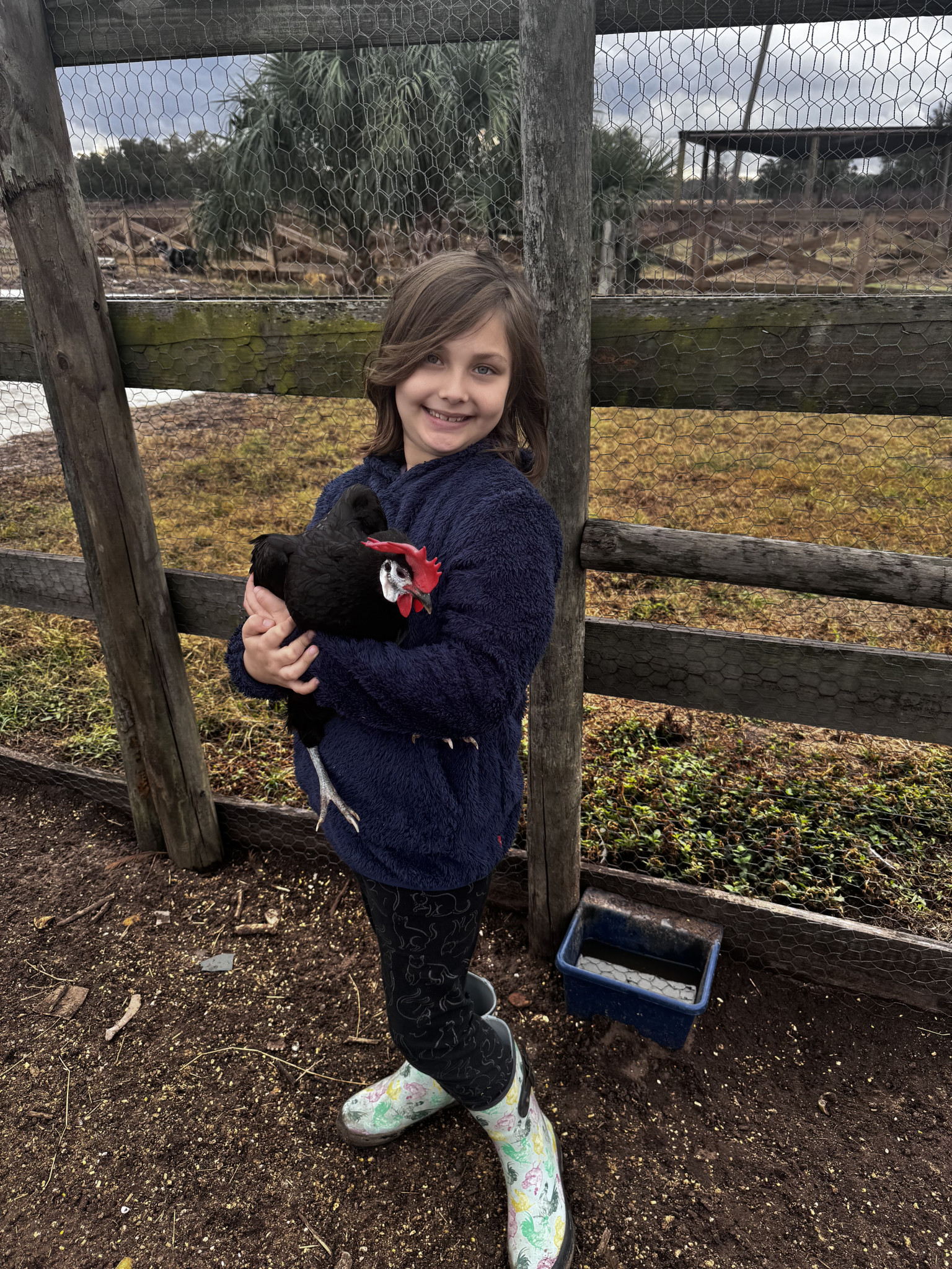 Currently she loves taking care of her chickens and checking to see if our peacocks have laid eggs yet and where! She also loves wandering our property to find cool bones rocks and plants!