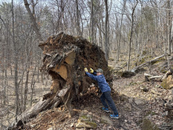 Scavenger hunts! Also, playing sports or biking, and hiking in the state park across the street. He is always on the lookout for that perfect walking stick!