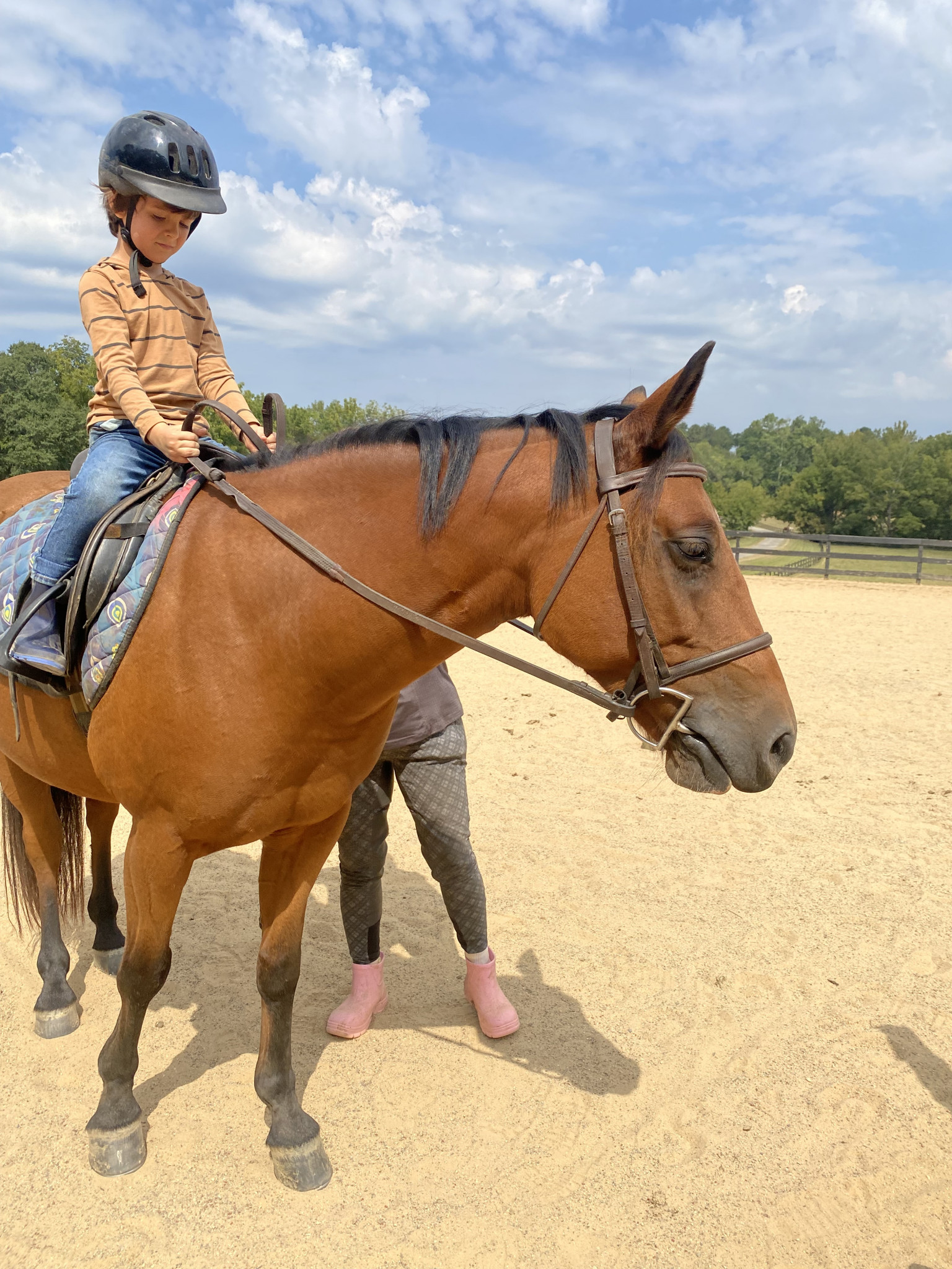 Riding on the horses and playing in bikes with friends in the neighborhood.