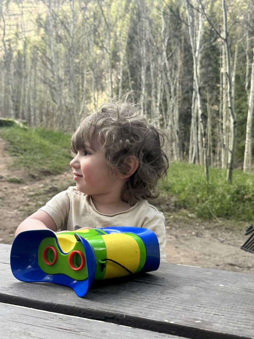 We’re always outside hiking. He loves to go to ponds and feed fish and ducks. He sees me taking wildlife photography here and there, and I bought him a little camera so he’s been taking it with outside. It’s funny, sometimes he hides his little animal figurines in our yard and practices taking their pictures.
