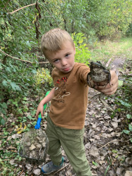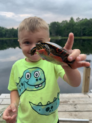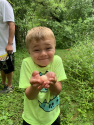 Noah loves to go on adventures in the woods. He likes to look under fallen trees for bugs & salamanders, in the creeks & ponds for tadpoles/frogs & so much more!