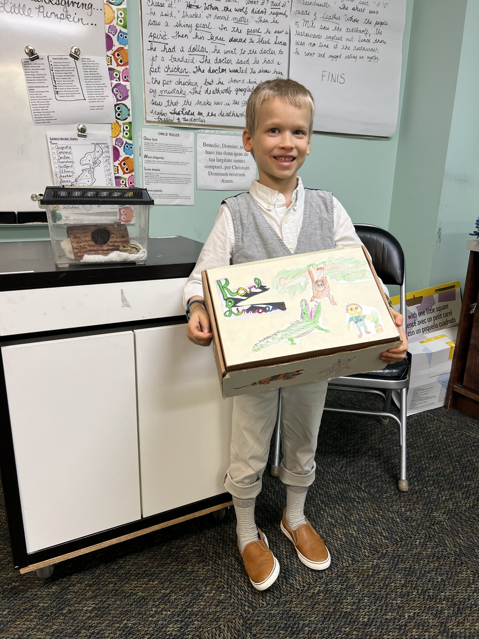 Peter loves animals and plants of all kinds, hiking, camping, and climbing. He goes out and draw animals he finds & learns their names!