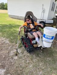 Learn MoreRayden spends lots of time in the hospital. Being outdoors helps him make lasting memories that he can hold on to while he is in those dark places; facing surgeries, procedures, or hospital stays. He says nature has a soothing smell (not like a hospital), and being outside makes him feel FREE! He has a unique way of exploring the woods, swamp, and fields. He has an all terrain track chair. This breaks his physical boundaries allowing him the freedom to fish, hunt, or just explore nature.