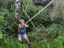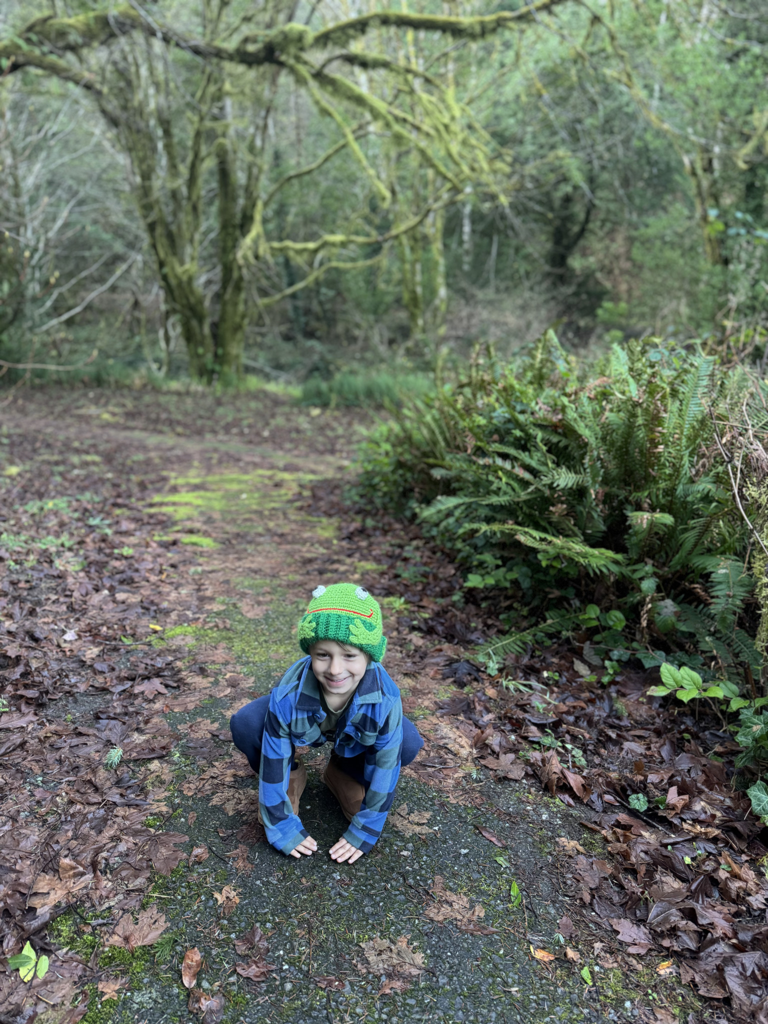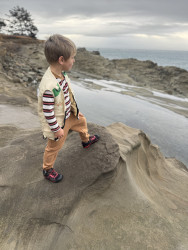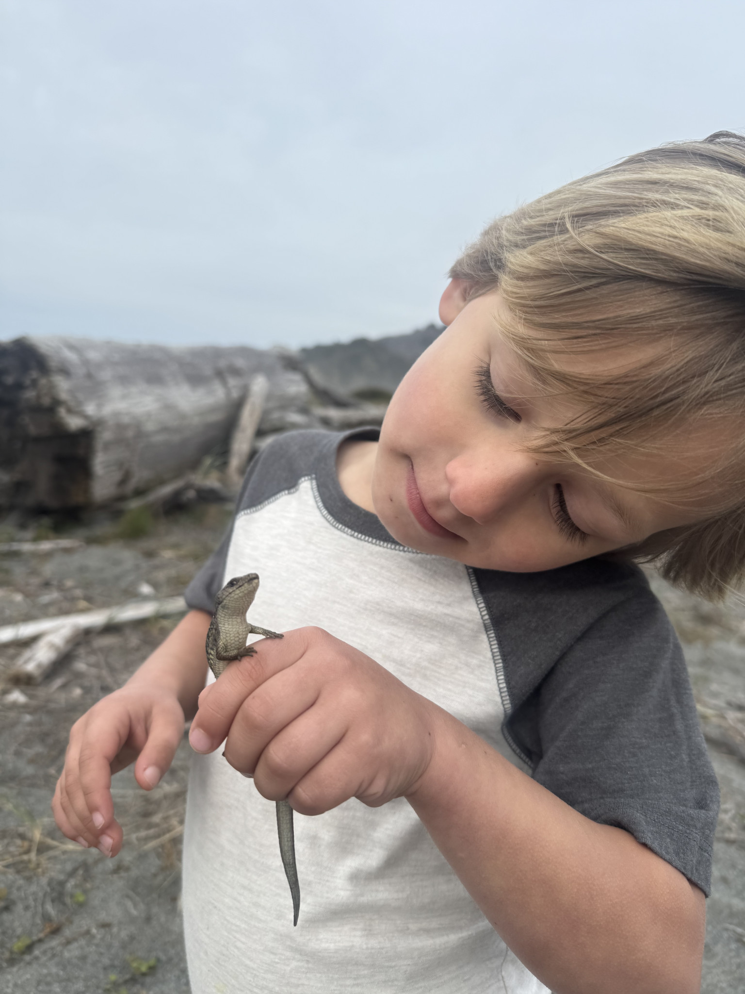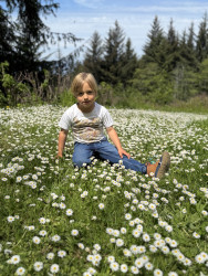 Watching salmon spawn in our creek, climbing rocks at the beach, swimming, collecting rocks, and meeting hikers on the trail who come to visit our redwoods. I also like watching foxes and playing tag outside. Being outside with my family is my favorite thing.