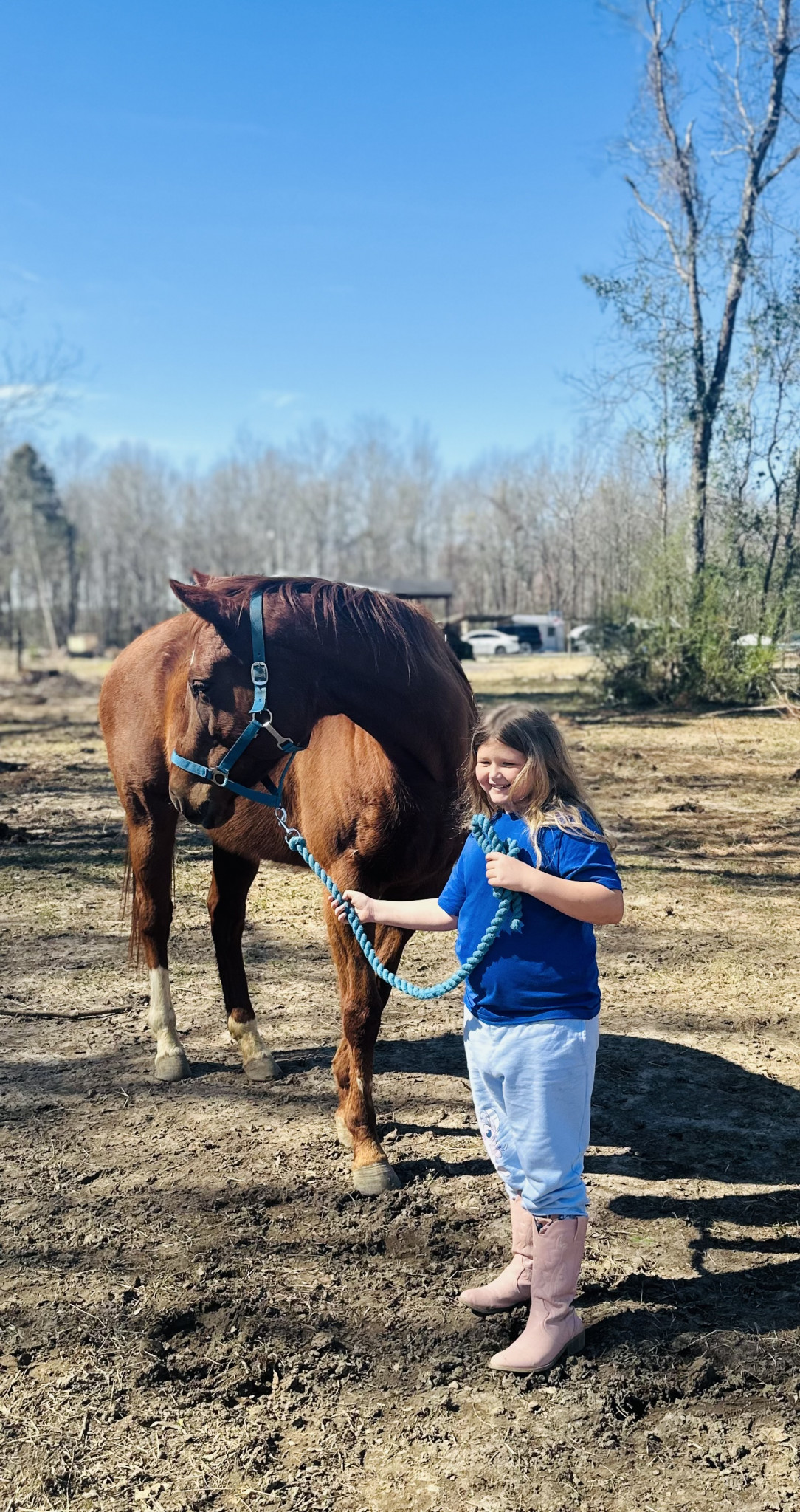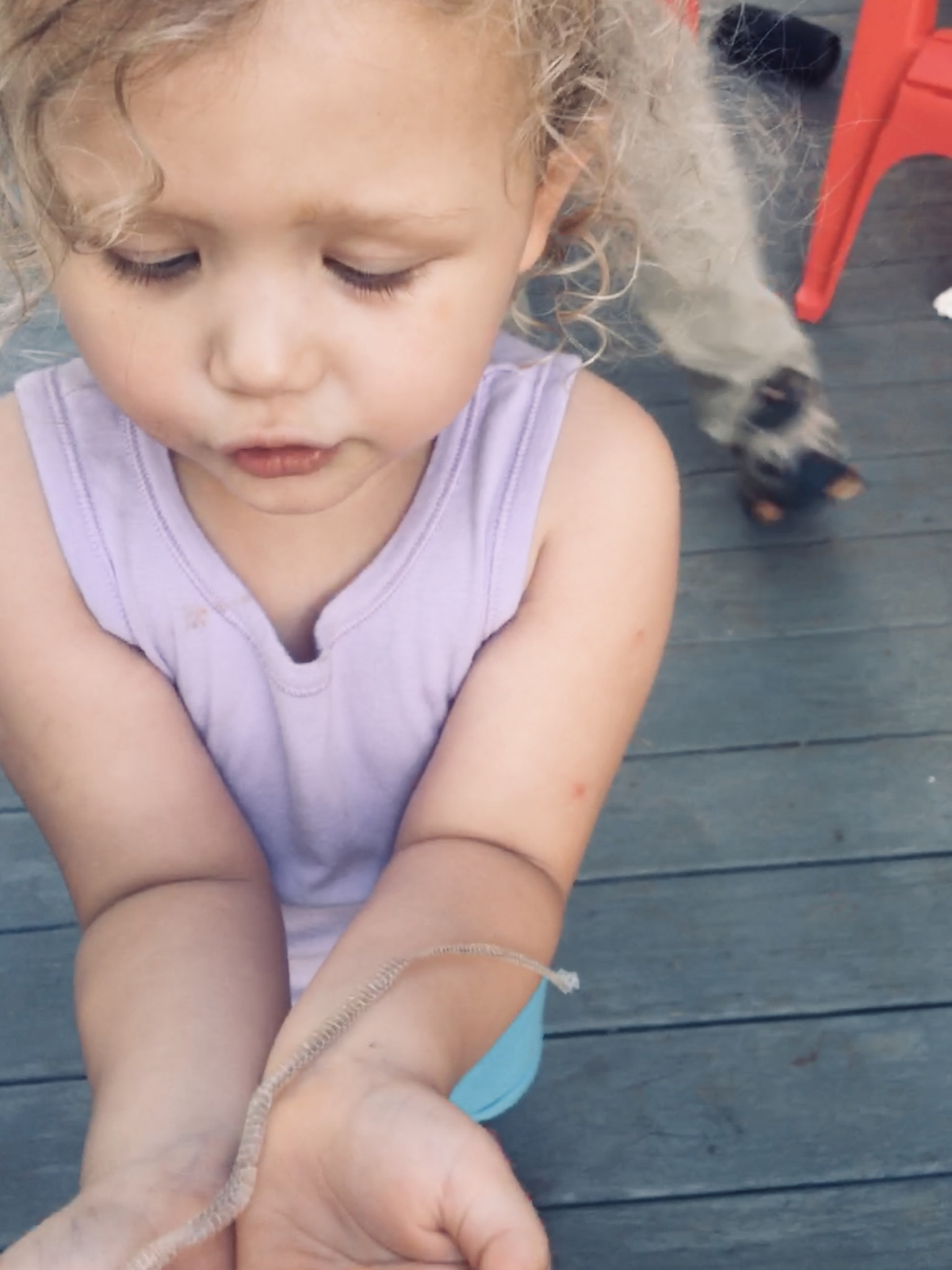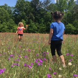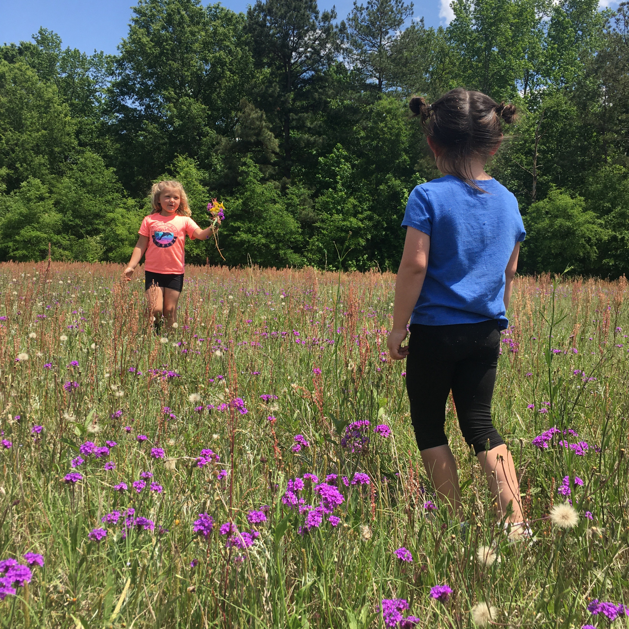 Her favorite outdoor activity is exploring she loves finding new things everyday she likes picking flowers for us