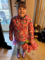 She likes cats at Halloween, and she likes polar bears in winter, she likes robins with red tummies in the spring time, and loves unicorns when she sees a rainbow, but she absolutely loves axolotls because they are pink, her favorite color.